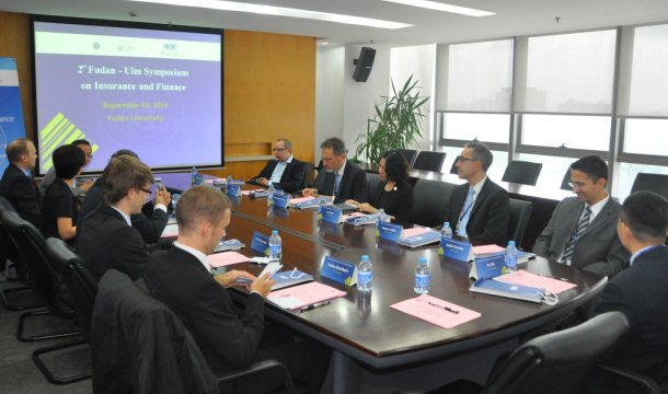 During the two-day symposium, over 20 faculty members and students from Fudan and Ulm presented their latest research findings on a wide range of topics. The 11 reports included: “Economic Analysis of Bearing Longevity Risks”, “Optimal consumption and investment decisions under time varying risk attitudes”, “Are Credit Default Swaps Redundant?”, “Financial Incentives and Loan Officer Behavior”, “Social Security under European Debt Crisis: Performance, Causes and Perspective”, “Guarantees in Indexed Annuity Plans”, “The Alumni Network and its Impacts on the Performance of Funds”, “Predatory Short Sales and Bailouts”, “Reinsurance and Insurer Performance: Domicile, Affiliation, and Authorization Effects”, “Analysis of the Going Concern Reserve under Solvency Ⅱ”, and “Earthquake disasters, marriage, and divorce: Evidence from China 2000-2011”.