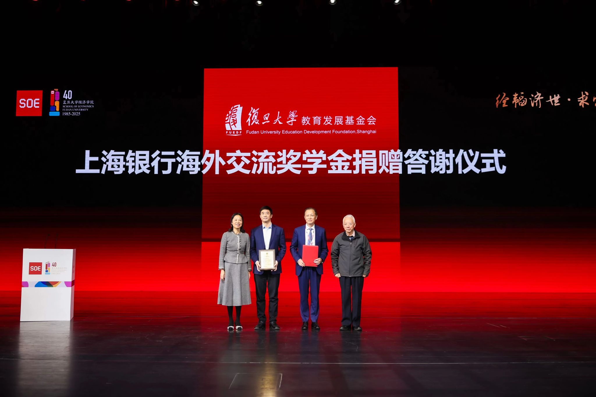 为助力更多优秀经院学子以此为起点走向世界舞台,大会举行了上海银行海外交流奖学金捐赠仪式。这份慷慨捐赠将化作托举学子飞向世界的翅膀,支持他们开拓国际视野。上海银行党委书记、董事长顾建忠深情回忆了在复旦经院求学的时光。他表示,复旦的培养与师长的言传身教是受益一生的财富,如今能以金融力量反哺母校,不仅是感恩,更是一份沉甸甸的责任。顾建忠介绍,该奖学金项目旨在资助经院学子赴海外留学深造,拓宽国际视野。他强调,上海银行始终秉持“金融让生活更美好”的初心,未来将继续深化与复旦大学在人才培养、科技金融及课题研究等领域的全方位合作,探索“金融+教育”新模式,为国家进步与社会发展贡献积极力量。