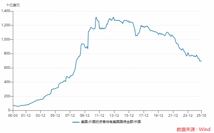 随着中国推进去美元化进程,10月中国持有的美债数量降至6887亿美元,创2008年10月(6841亿美元)以来的最低水平