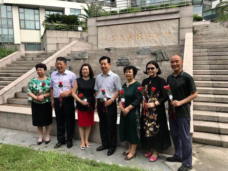酷暑丝毫没有减弱校友们时隔30年后再相聚的激动与喜悦,当天20位校友及部分家属早早来到经院。大家还邀请了当年的几位老师,洪远朋、尹伯成、徐文虎、严法善等老师,前来相聚。师生、同学阔别30年,难掩激动和兴奋。大家手拿校友提供的别致的手工绢花在经院楼宇前合影留念,随后在801会议室座谈交流。