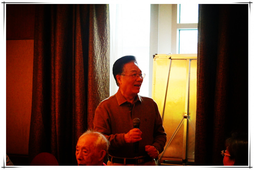 接着老师们依次发言。张薰华老师95岁高龄出席了同学会,并为同学们讲解了《资本论》与知识分子等问题。伍柏麟老师也分享了家庭生活健康等心得给同学们。洪远朋老师巧妙地化用他的名字“有朋自远方来不亦乐乎”来欢迎同学;尹伯成老师用他的养生之道为大家上了生动的一课,并用一副对联概括了人生:“做人做事做学问关键是做人,多看多听多思考关键在思考”;宋运肇老师提出了自己的准则:“低调做人,低碳生活。”另外,当年的老师朱民和罗首初也通过视频表达了对同学的祝福。