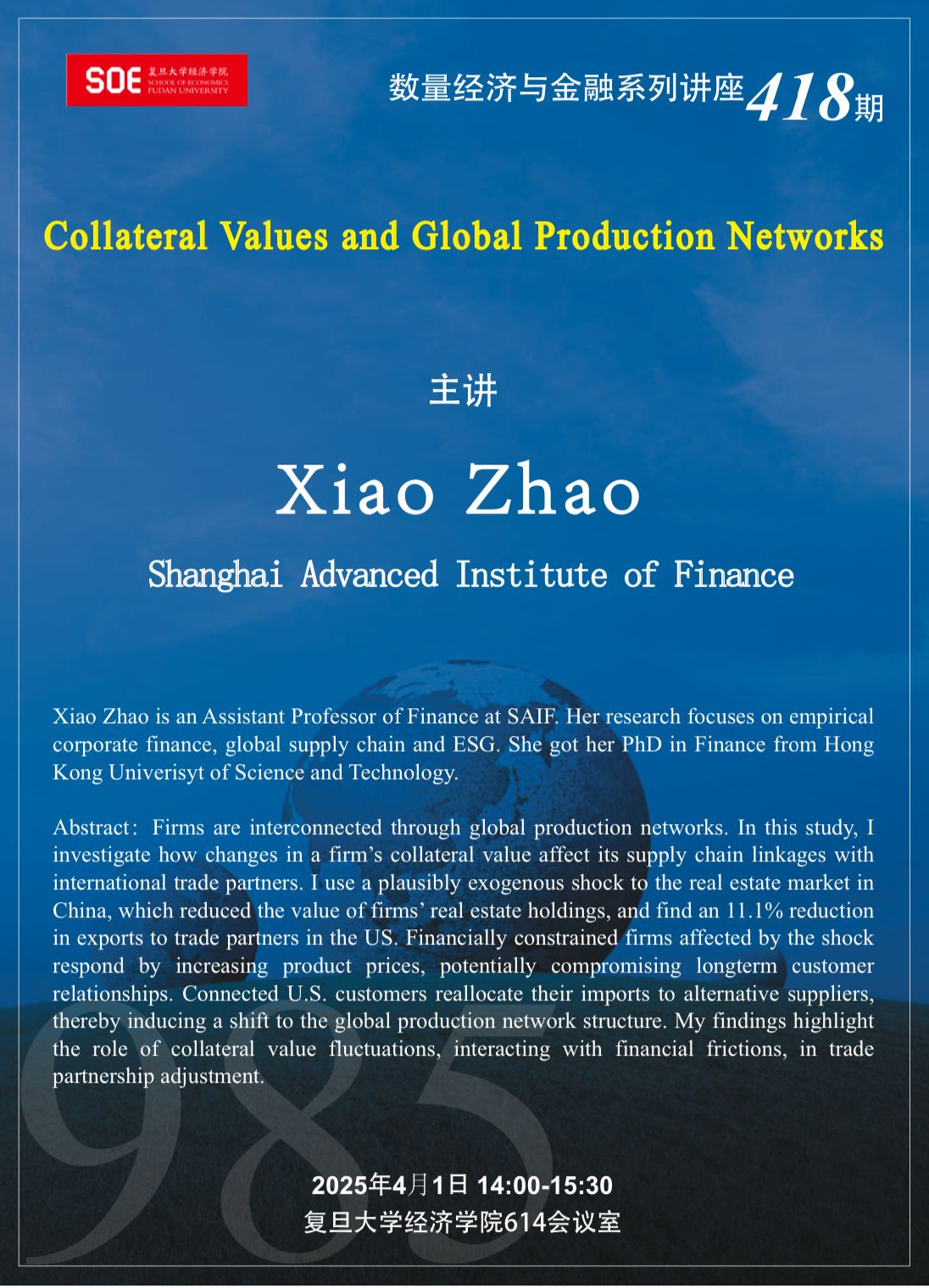 Speaker: Xiao Zhao, Shanghai Advanced Institute of Finance