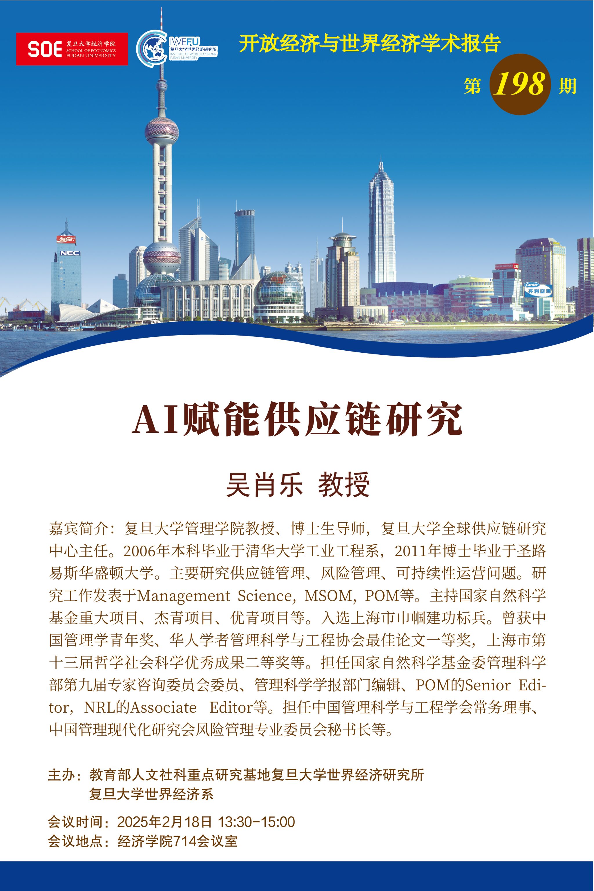 主讲:吴肖乐教授 复旦大学管理学院教授、博士生导师,复旦大学全球供应链研究中心主任