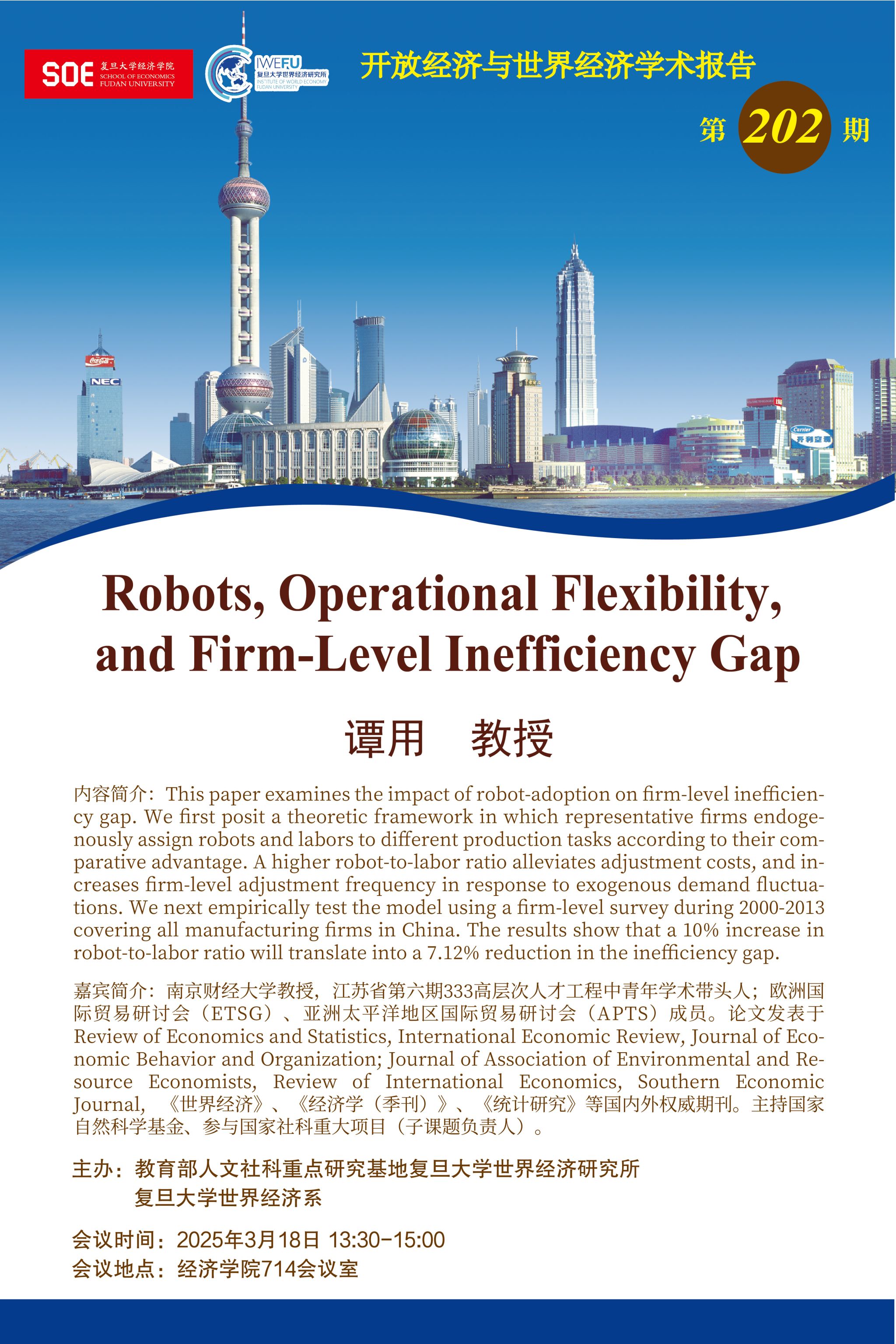 上一篇: 复旦大学世界经济研究所开放经济与世界经济学术报告第203期:Incomplete Tariff Pass-Through at the Firm-level: Evidence from the U.S.-China Trade Dispute