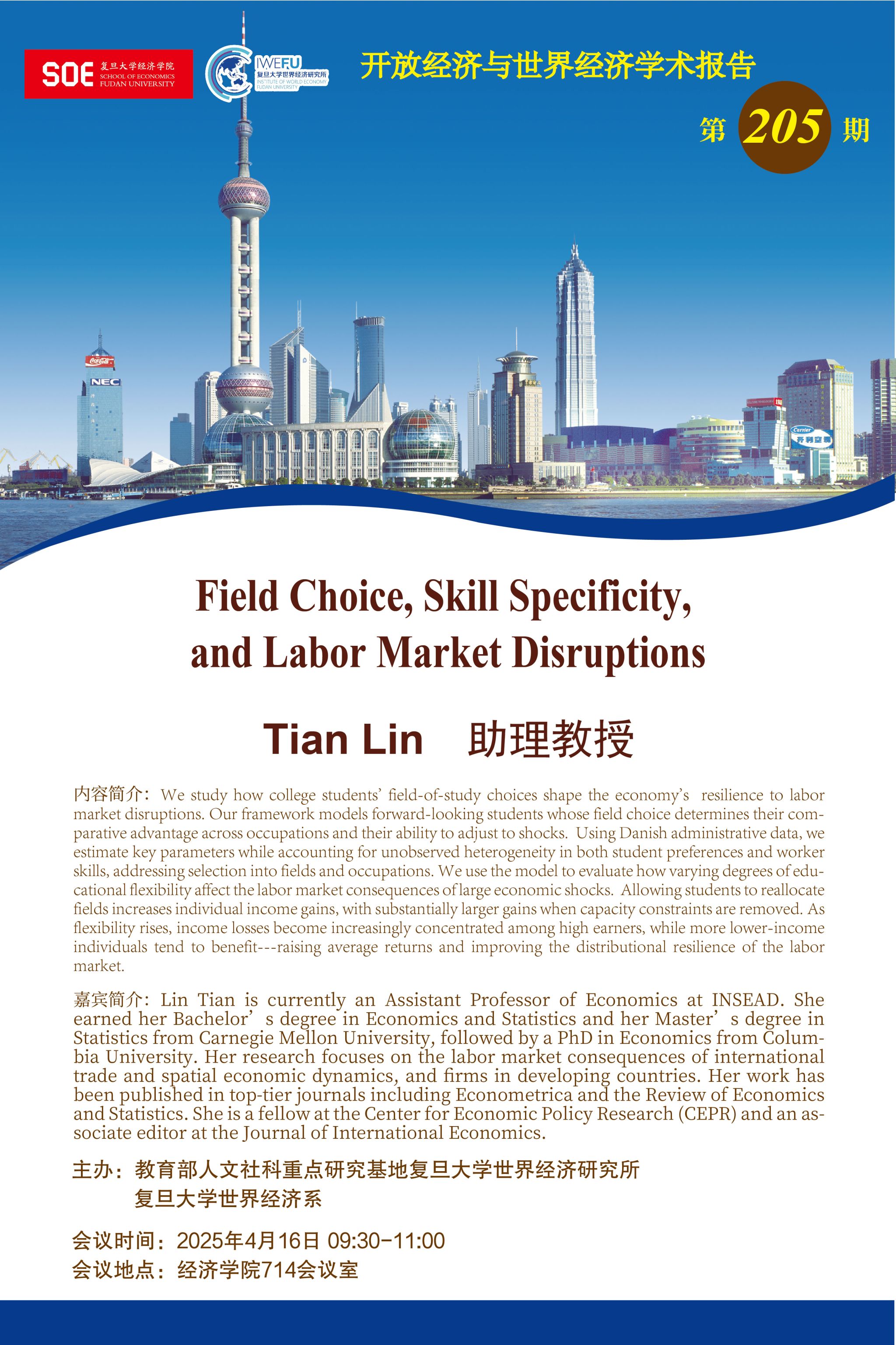 复旦大学世界经济研究所开放经济与世界经济学术报告第205期:Field Choice, Skill Specificity, and Labor Market Disruptions