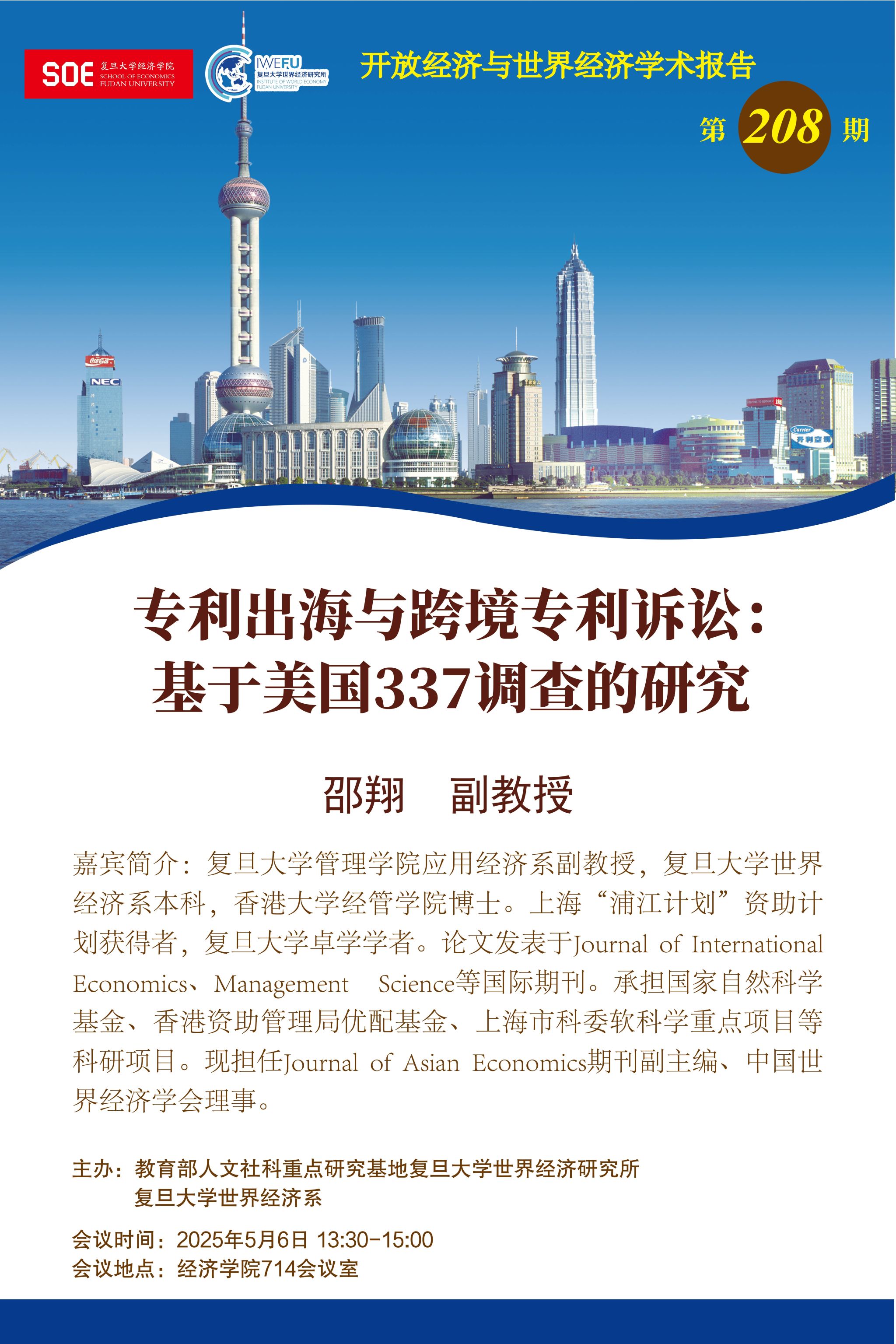 上一篇: 复旦大学世界经济研究所开放经济与世界经济学术报告第209期:校庆报告会