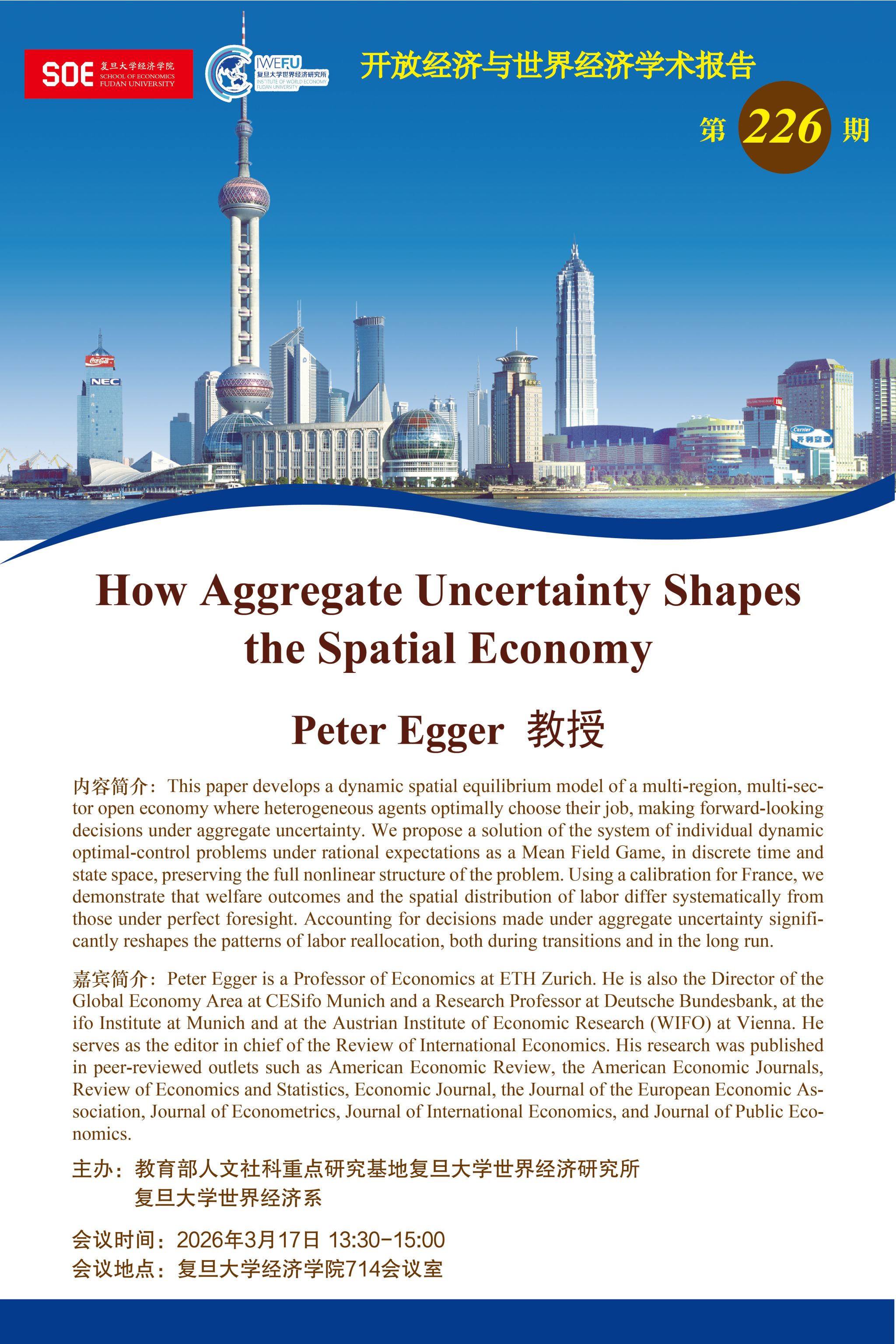 复旦大学世界经济研究所开放经济与世界经济学术报告第226期:How Aggregate Uncertainty Shapes the Spatial Economy
