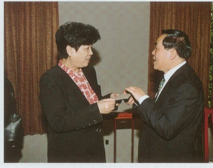 图为2000年4月,教育部部长陈至立会见复旦大学首席教授伍柏麟