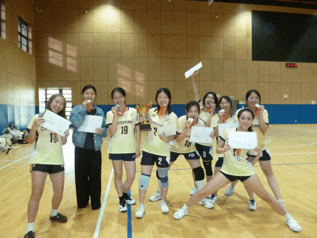 八进四比赛中,球队延续良好状态,轻松战胜公共卫生学院挺进四强。半决赛对阵去年亚军社政学院,首局顺利拿下后陷入苦战,决胜局以16:14险胜晋级决赛。决赛面对实力强劲的国际交流学院,队员们飞身救球、奋力拦网拼尽全力,尽显体育精神,最终获得亚军。