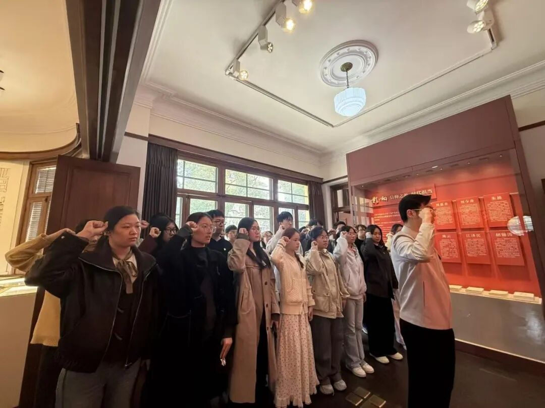 戴靖妮:作为新一批预备党员,我有幸与其他同志一起走进了陈望道旧居参观,并进行入党宣誓。看着陈望道先生当年翻译《共产党宣言》的场景,聆听“以墨为糖”的动人故事,我真切感受到革命先辈追求真理的执着与为国为民的赤诚。《共产党宣言》早已不是冰冷的文字,而是照亮前路的精神火炬。作为一名预备党员,此次宣誓不仅是一次仪式,更是一场信仰的洗礼。我将传承这份坚守与热忱,牢记入党誓言,以实际行动践行初心使命,让真理之甜在新时代延续。