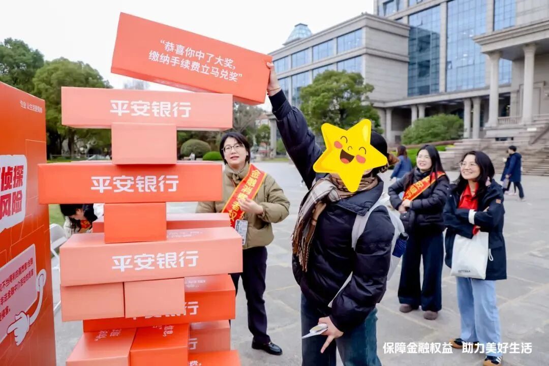 现场设置金融消保主题漫画展,广泛宣传平安银行×中国法治出版社联合出品的《三分钟漫画金融常识》书籍。广大师生纷纷驻足欣赏,品味漫画艺术魅力;宣讲团成员还借助“加密翻转墙”、“风险拆解积木”互动装置,生动讲解个人信息保护、珍惜信用记录等要点。